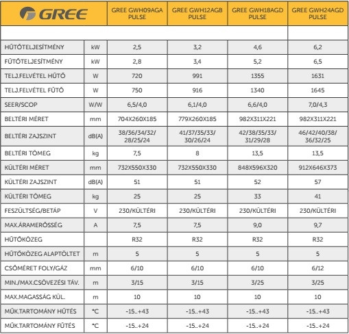 A Gree GWH12AGB Pulse Inverteres Split klíma fontos tulajdonságai: